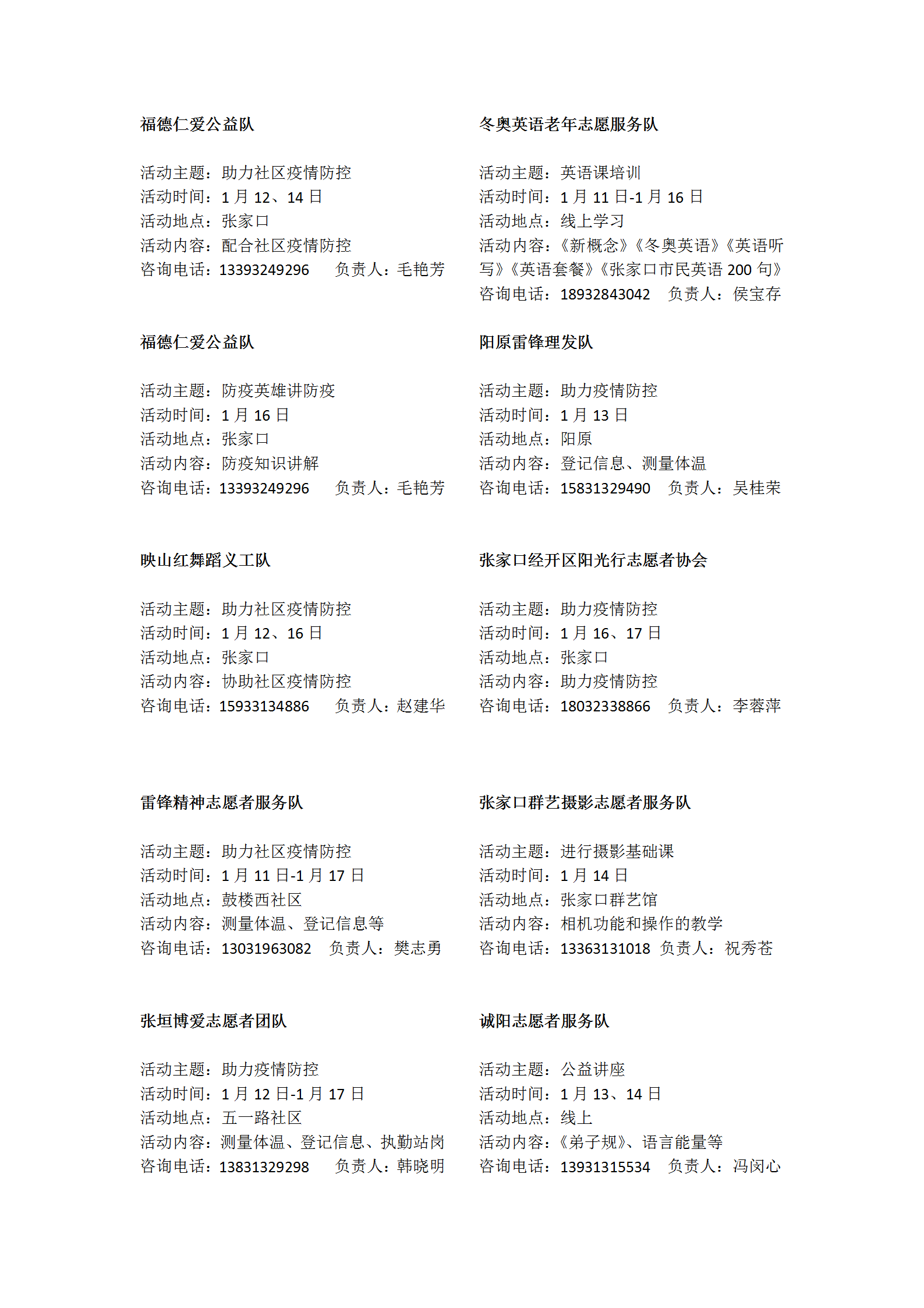 37000v威尼斯冬奥分会属地张家口,在张家口地区长期开展慈善公益活动,宣传慈善义工精神,壮大慈善义工队伍,备战冬奥,全力打造冬奥会志愿服务闪亮名片。以下为冬奥分会1月11日至1月17日活动预告。