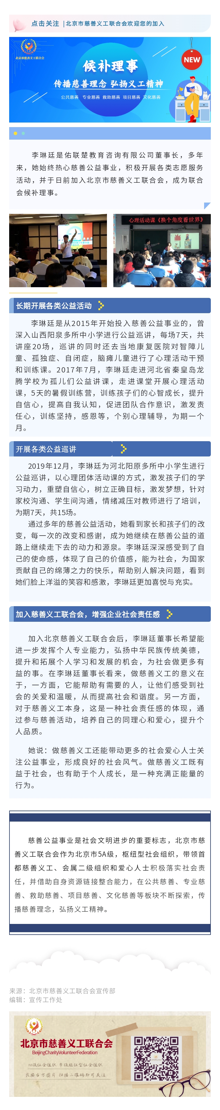【候补理事风采】李琳廷:带动社会爱心人士关注公益事业,形成良好社会风尚