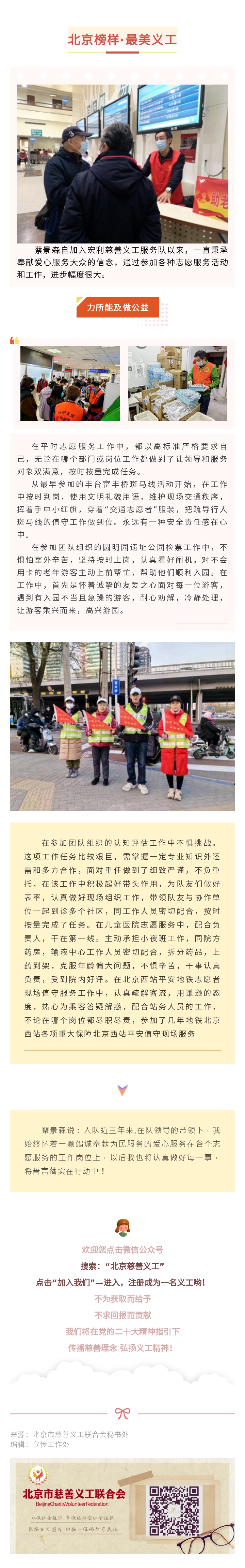 【北京榜样·最美义工】宏利慈善义工服务队:蔡景森