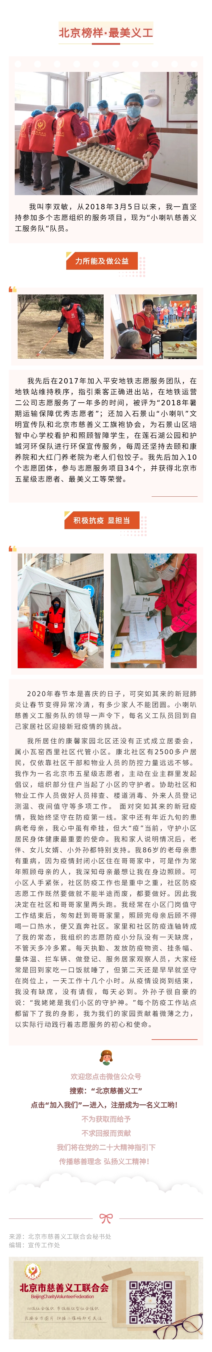 【北京榜样·最美义工】小喇叭慈善义工服务队队员:李双敏