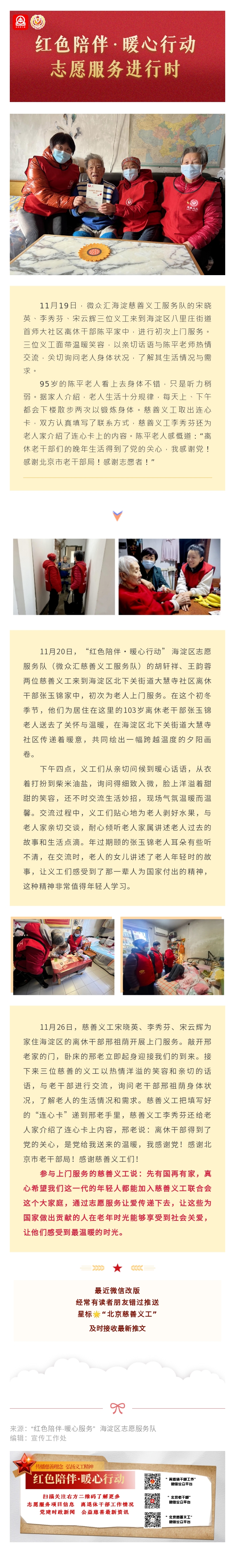 【红色陪伴.暖心行动】海淀区慈善义工上门为离休老干部送去关怀与温暖