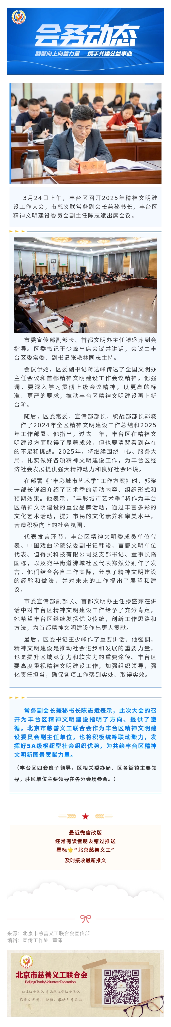 会务动态|常务副会长兼秘书长陈志斌出席丰台区2025年精神文明建设工作大会
