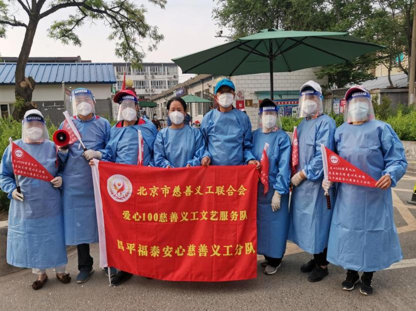 爱心100慈善义工服务队,在抗击疫情的3年间,发动慈善义工几万人次,积极开展社区扫码、出入登记、核酸检测等志愿服务活动,服务范围涵盖北京10多个区县,先后荣获西城区、房山区、昌平区、海淀区的“抗疫最美逆行者”、“榜样团队”等荣誉称号。