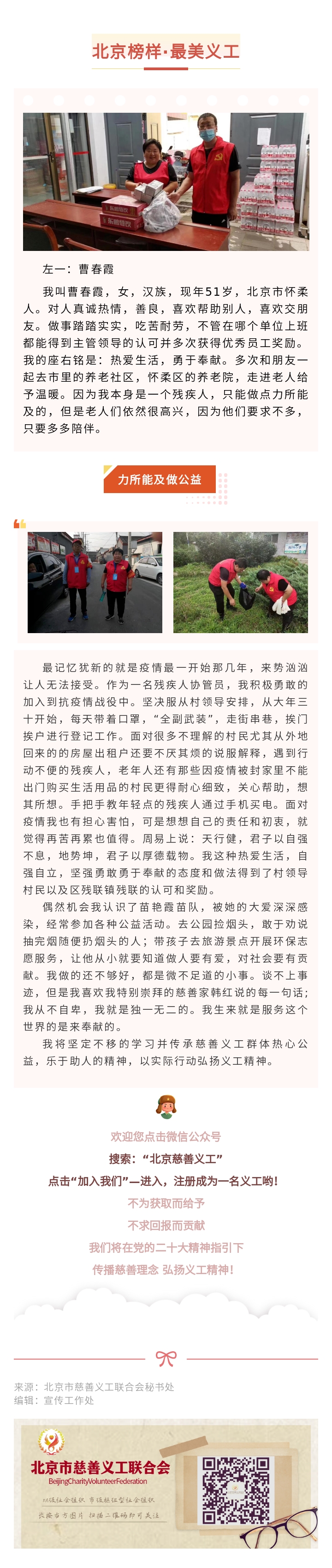 【北京榜样·最美义工】爱心手拉手慈善义工服务队队员:曹春霞