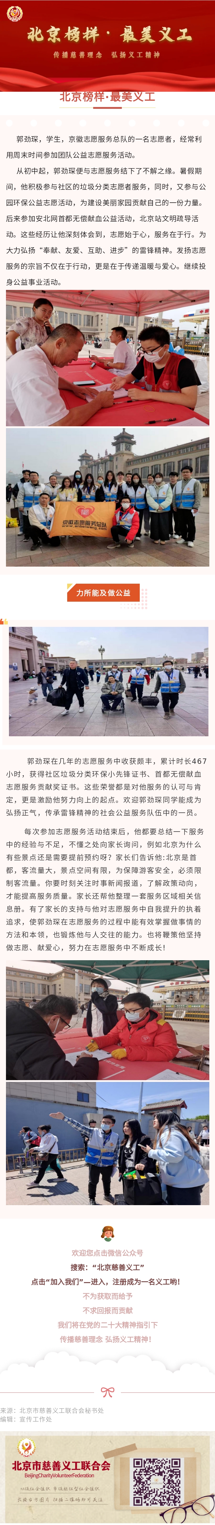 【北京榜样·最美义工】郭劲琛:爱心传递 公益之行