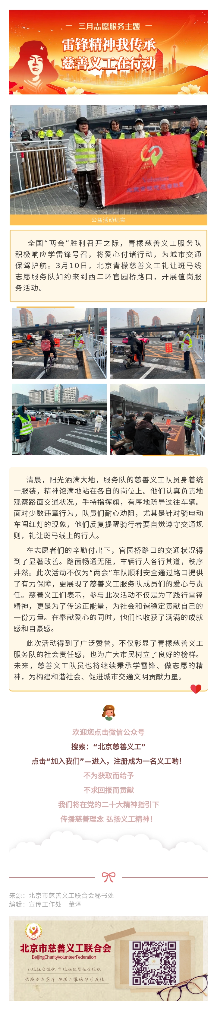 青檬慈善义工服务队助力“两会”,学雷锋见行动保障交通秩序