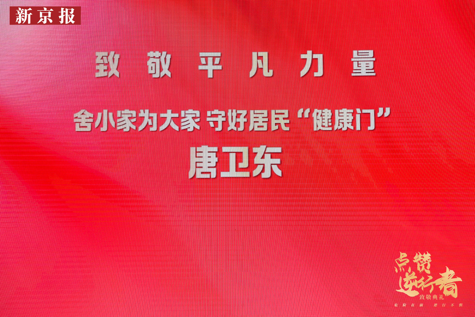 唐卫东致敬词:他发挥自己安保队伍的人员优势,助力首都疫情防控,物资紧缺时,他联系各地朋友,购买防护用品,运至北京,防控队伍资金不足,他四处筹款垫付工资,作为一名默默无闻的“红马甲”,唐卫东为防疫工作贡献出了自己的一份热、一份光。