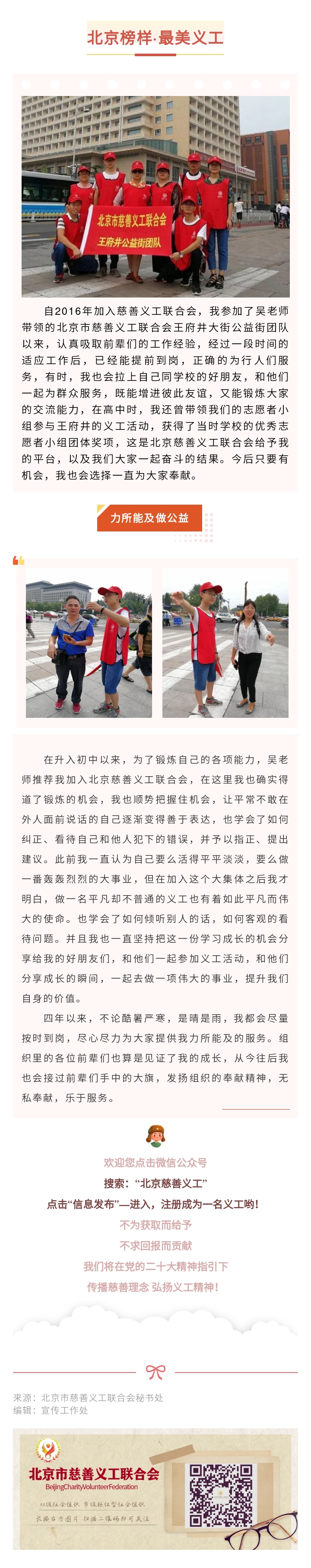 【北京榜样·最美义工】王府井大街公益街团队队员——杨子健