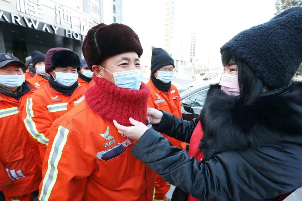 2020年至2021年,我带领团队为10个社区防疫一线的社区工作者和值岗人员及城市保安员送温暖,助力疫情防控。为首都环卫工人、城市文明引导员、松堂老人及温馨家园的残疾人群体送温暖,为内蒙古海拉尔地区防疫工作者和河南郑州防疫一线工作者送温暖,共计送出义工编织的线帽、脖套2200余件。