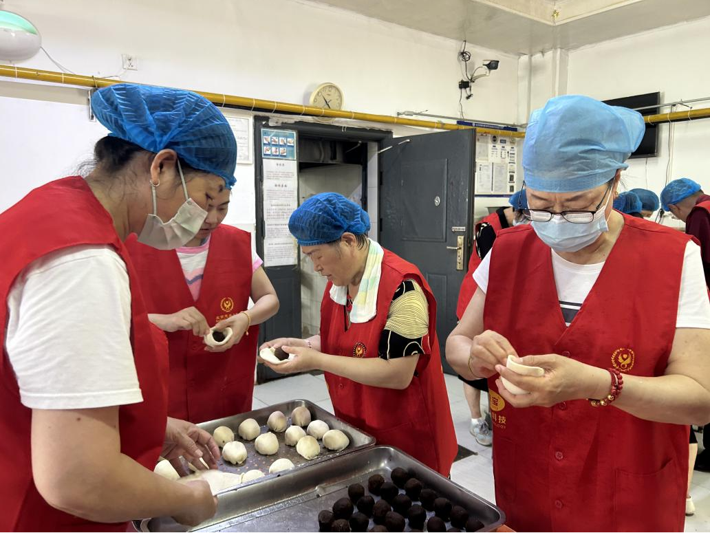 8月10日,荣耀爱心慈善义工服务队19位慈善义工来到北京松堂关怀医院,开展常态化周末送温暖志愿服务活动。队员们不顾汗水流淌湿透衣衫,在各自的岗位上忙碌的同时有序配合,揉面、擀皮、调制馅料。在大家的努力下,400多个豆沙包、葱油花卷和圆圆的小馒头制作完成。想着老人们能吃到自己亲手制作的精美面食,大家的脸上洋溢着幸福且自豪的笑容。
