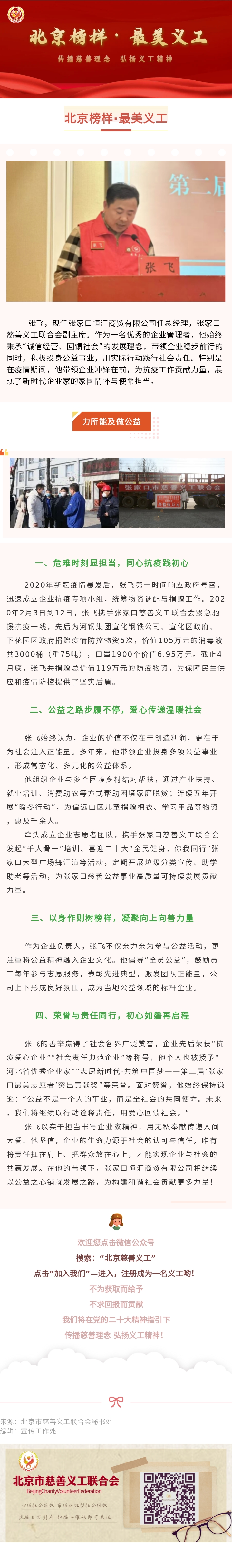 【北京榜样·最美义工】张家口慈善义工联合会副主席:张飞