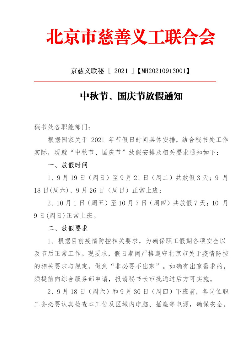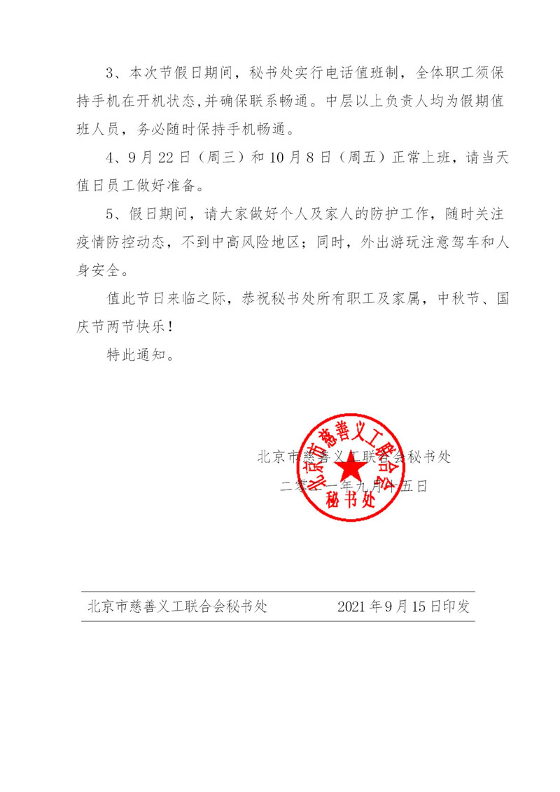 「温馨提示」关于37000v威尼斯秘书处中秋节和国庆节放假安排的通知