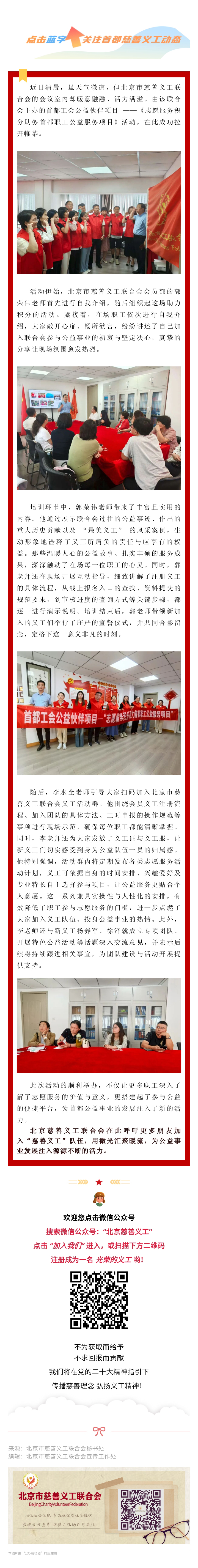 首都工会公益伙伴项目活动顺利举办,点燃职工公益服务热情