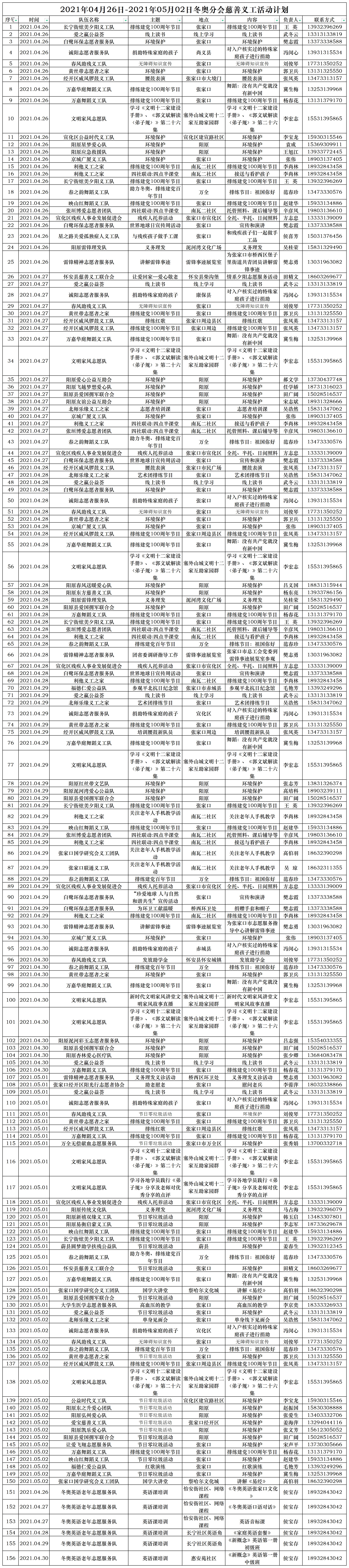 慈善义工4月26日至5月2日活动预告!