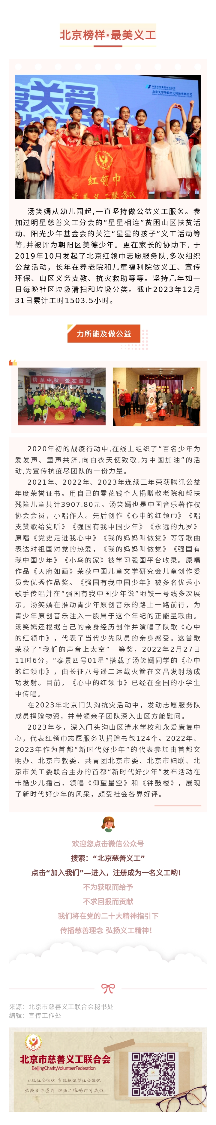 【北京榜样·最美义工】红领巾慈善义工服务队:汤笑嫣