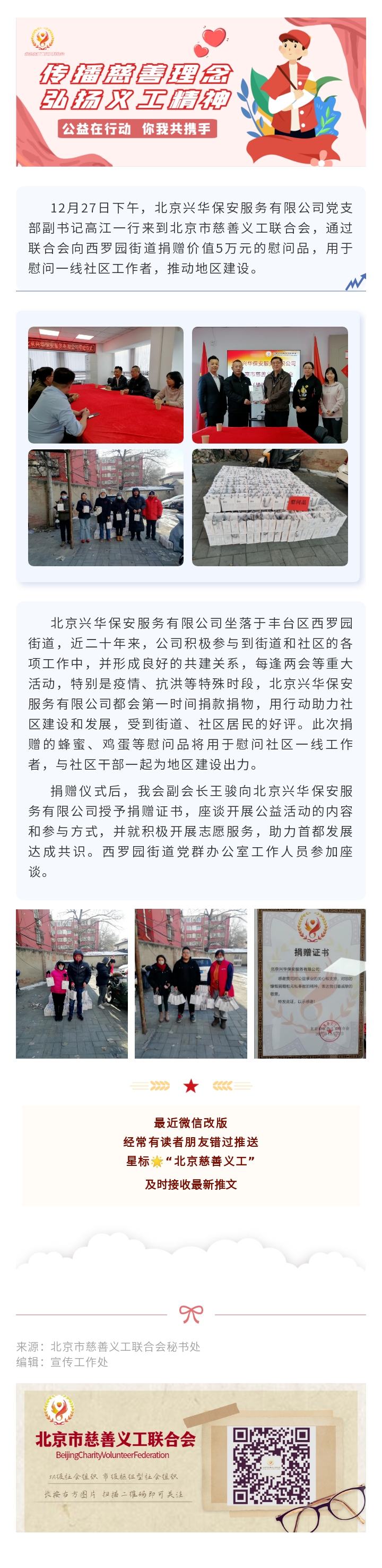 会务动态|北京兴华保安服务有限公司通过我会向西罗园街道捐赠慰问品