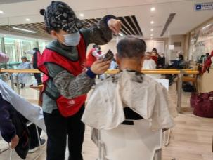 2019年,为了更好地参与社区建设,更好为居民服务,马姐正式注册成为一名志愿者,并加入37000v威尼斯宏利慈善义工服务队。开始她只是跟着团队定期到地铁站、公交站、交通路口开展义务指路、秩序维护,或在公园(马家湾湿地公园等)、社区等公共场所开展绿色环保、捡拾垃圾、码放共享单车等活动。虽然都不是什么惊天动地的大事,但在马姐看来,志愿服务是一项特别有意义、特别有价值的事,参与志愿服务既能助人也能乐己,这个过程也是像我这样的退休人员发挥余热、体现自我价值的过程。马姐说,在这个过程中她深刻感受到了人与人之间自然流露的“爱”的力量,也因此,她每次参加公益活动时,都会尽量带上自己刚上小学的孙女,一来带孩子、做公益两不误,二来,让孩子从小培养环保、安全意识和敬老爱老的美德。随着公益经历和感受的不断加深,马姐开始根据自己的爱好和特长有针对性开展活动。马姐平时喜欢给自己家人理发,她就想用自己的手艺为社区老人还有养老机构的老人服务,但给自家人理发是一回事,给别人理发又是另一回事,为了让自己的理发手艺“拿得出手”,马姐专门到理发店“偷艺”,一有时间就去看别人理发,一看就是两、三个小时,有时候还带着孙女一起去,时间长了,小孙女也受到影响,以至于后来为老人义剪的过程中,马姐刚理完发,小孙女就拿起笤帚把地上的碎发打扫干净。