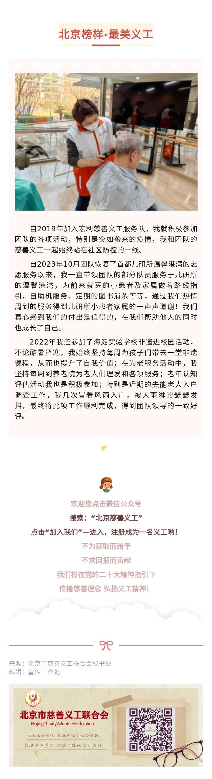 【北京榜样·最美义工】宏利慈善义工服务队:赵静荣