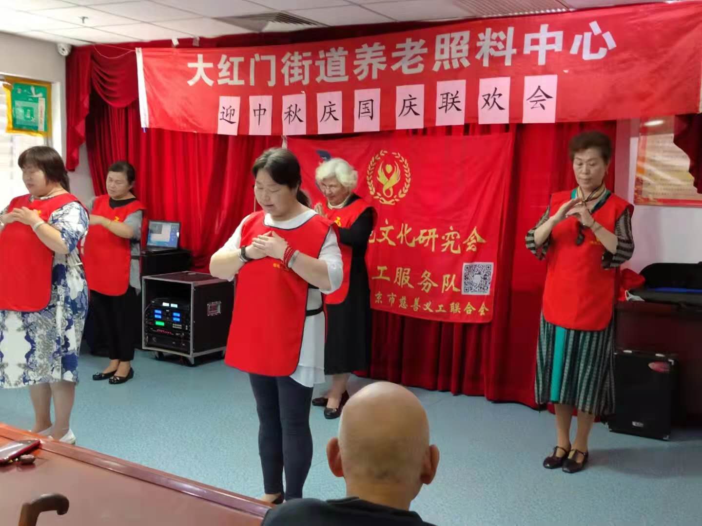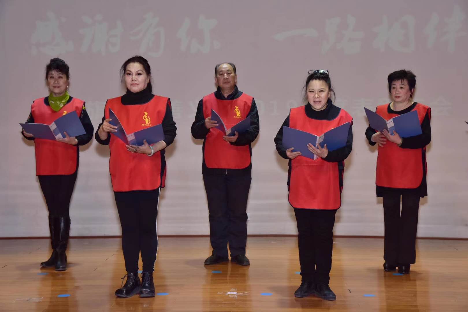 2020年元月在表彰总结2019年工作年会上,北京旗袍文化研究会慈善义工穿着红马甲,昂首阔步走向舞台,配着优美的旋律,自编自导自演的诗朗诵,音韵抑扬顿挫、声音铿锵有力,清脆悦耳地朗朗诵读着《感谢有你一路相伴》,"我们就是你我他,就是最美的慈善义工。