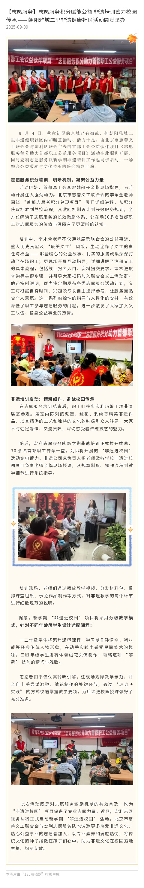 【志愿服务】志愿服务积分赋能公益 非遗培训蓄力校园传承 —— 朝阳雅城二里非遗健康社区活动圆满举办