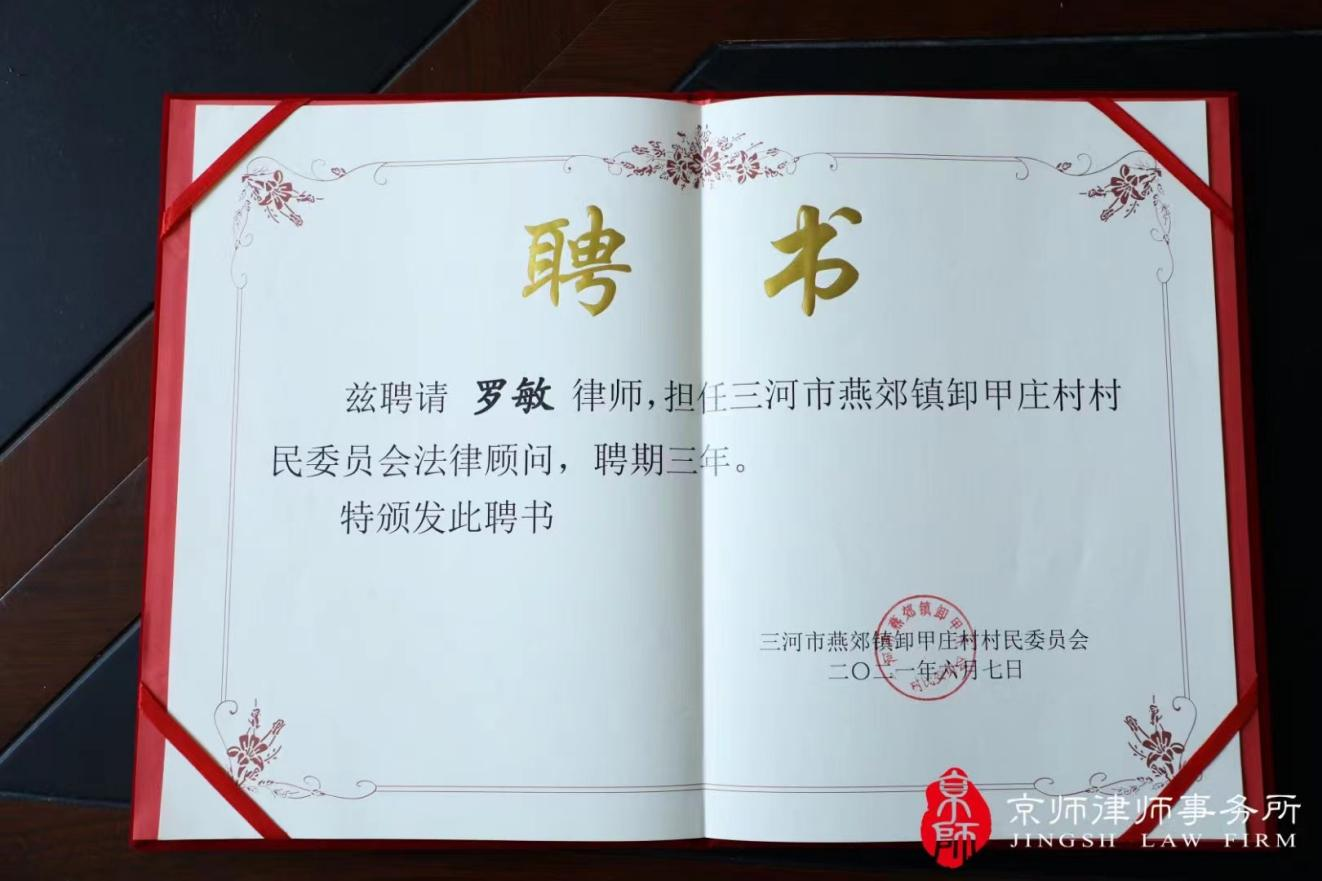 罗敏律师自2016年正式执业以来,扎根基层,通过与村委会共建联合体进行公益活动,服务百姓,特别是老弱病残、贫困、部队、村委会等群体,服务内容包括免费写文书、咨询、开展法治宣讲等,受益群众达几万人。2020年以来,罗敏律师与河北省燕郊镇村委会、河北省三河市赵屠工村村委会、河北省三河市大唐迴村村委会建立法律联合共同体,每个月以线上或者线下形式进村至少一次普法法律大讲堂宣讲。2021年以来,身为军嫂的罗敏,下到各个基层与各大军营开展各类形式的普法进军营活动,受到到官兵的一致好评。