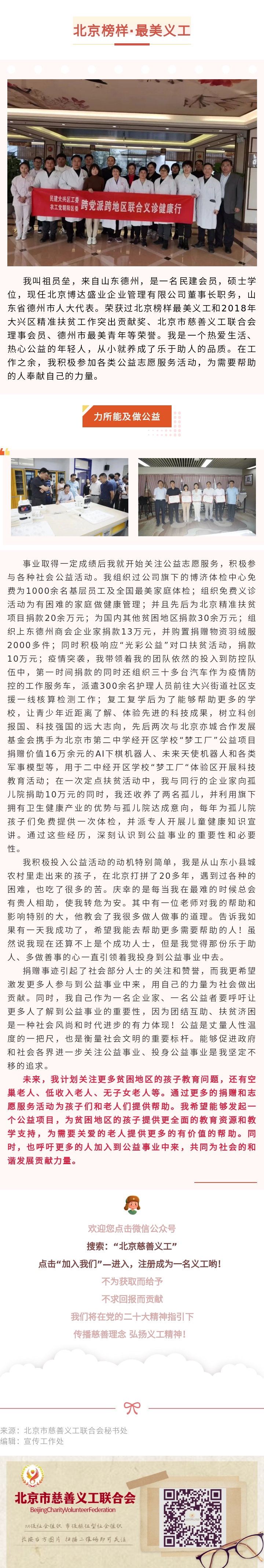 【北京榜样·最美义工】祖员垒:关注公益志愿服务,积极参与社会公益活动