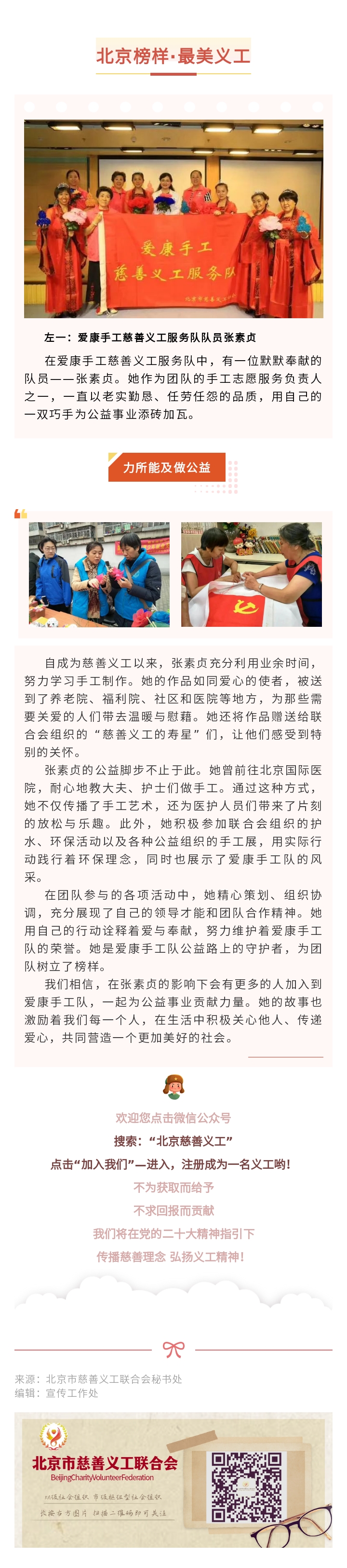 【北京榜样·最美义工】爱康手工慈善义工服务队队员:张素贞