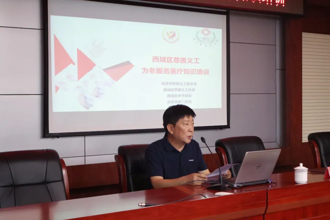 为进一步提高“红色陪伴·暖心行动”西城区志愿服务团队为老服务能力,在上门慰问的同时为居家老干部提供基础的健康知识宣教及精神关爱,提升红色陪伴的服务质量,西城区志愿服务队特邀北京市第二医院医护团队在西城区委老干部局举行“西城慈善义工为老服务专项医疗知识培训”。