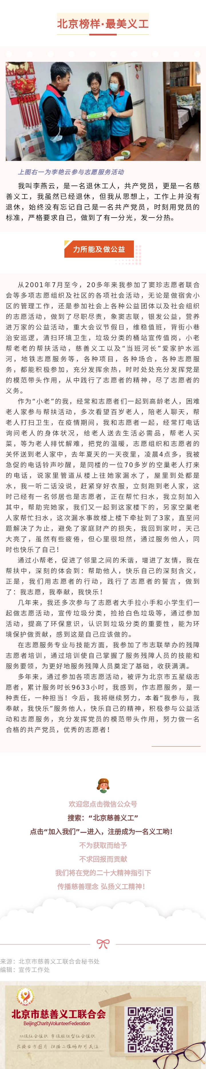 【北京榜样·最美义工】窦志联慈善义工服务队:李燕云
