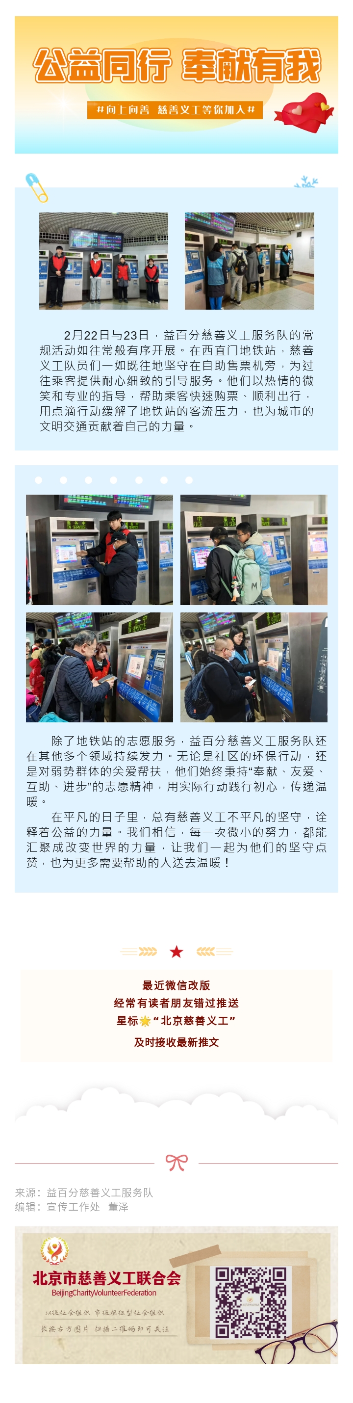 益百分慈善义工服务队在西直门地铁站开展义务售票指引