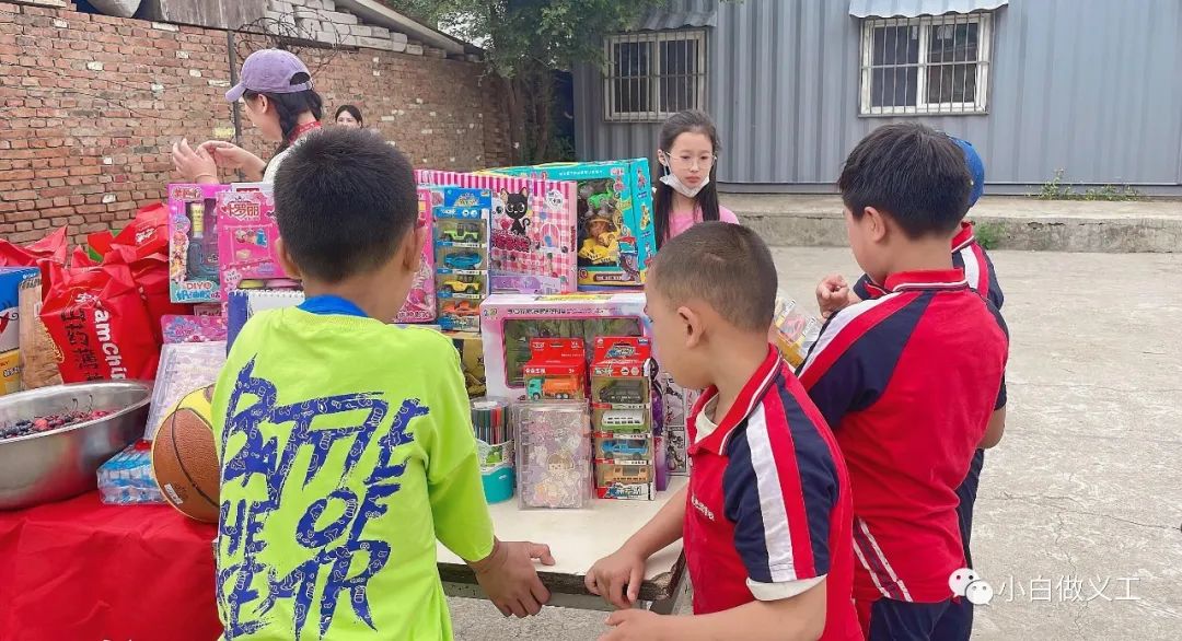 在这个特别的日子里,孩子们早早地等待着大家的到来。本次活动小白慈善义工服务队带来了美味的零食和礼物,让孩子们尽情地玩耍的同时享受节日的快乐。烈日炎炎下,队员们不惧酷暑给孩子们搭起的“零食随心吃小超市”,做好孩子们的后勤补给工作,随时等候表演完的小朋友们来补充能量,孩子们直呼简直太幸福啦!
