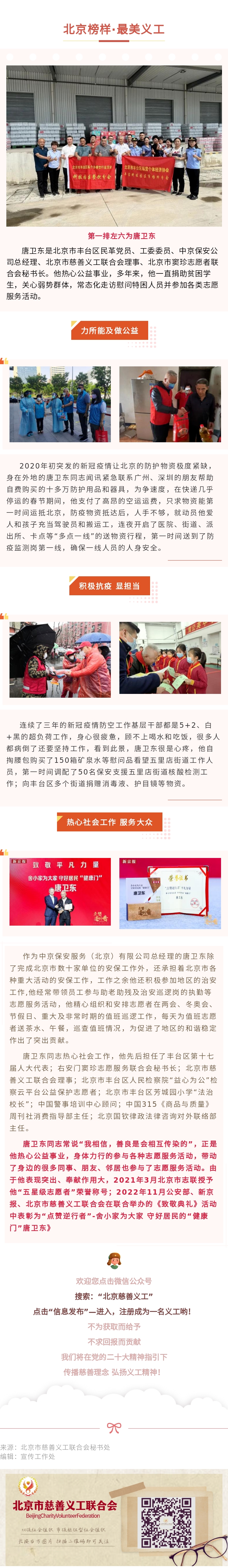 【北京榜样·最美义工】37000v威尼斯理事唐卫东:善良是会互相感染的
