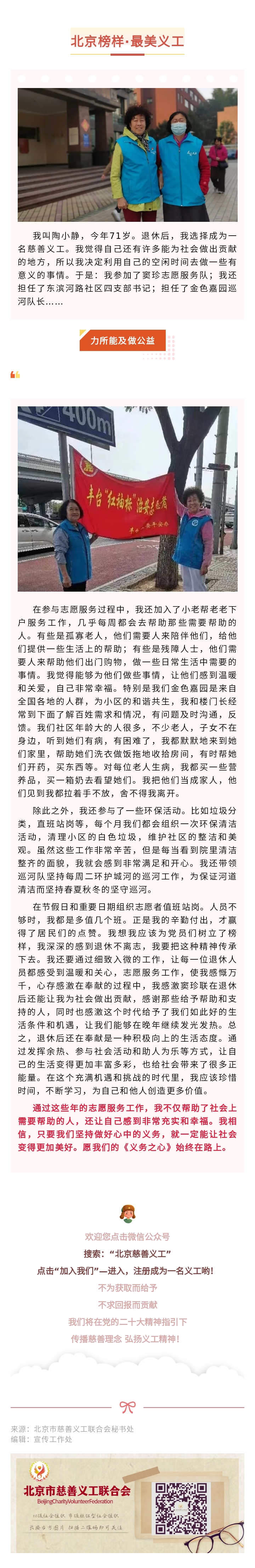 【北京榜样·最美义工】窦志联慈善义工服务队:陶小静