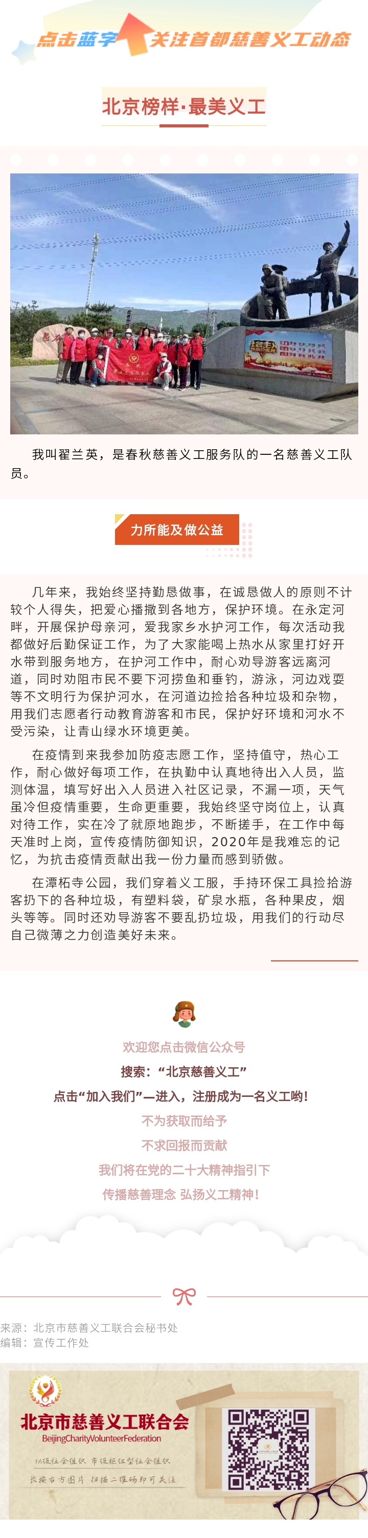 【北京榜样·最美义工】春秋慈善义工服务队队员:翟兰英
