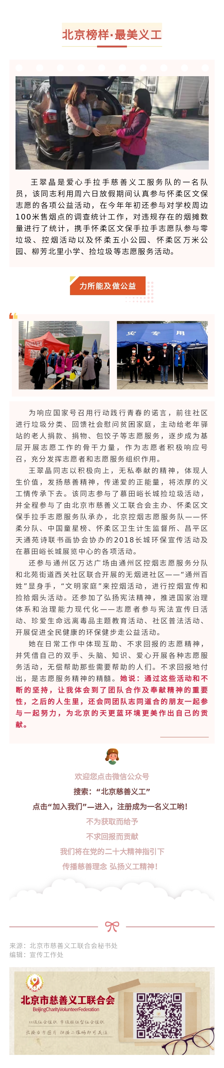 【北京榜样·最美义工】爱心手拉手慈善义工服务队队员:王翠晶