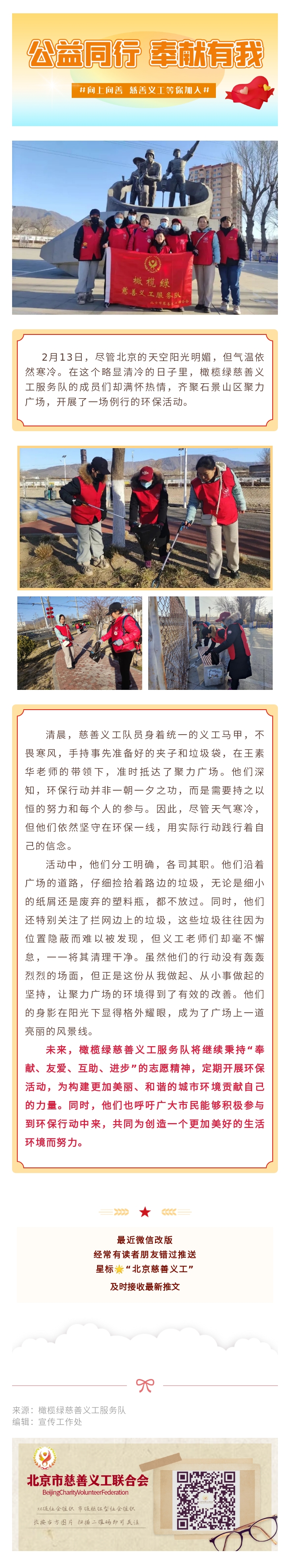 橄榄绿慈善义工服务队于石景山区聚力广场开展环保活动