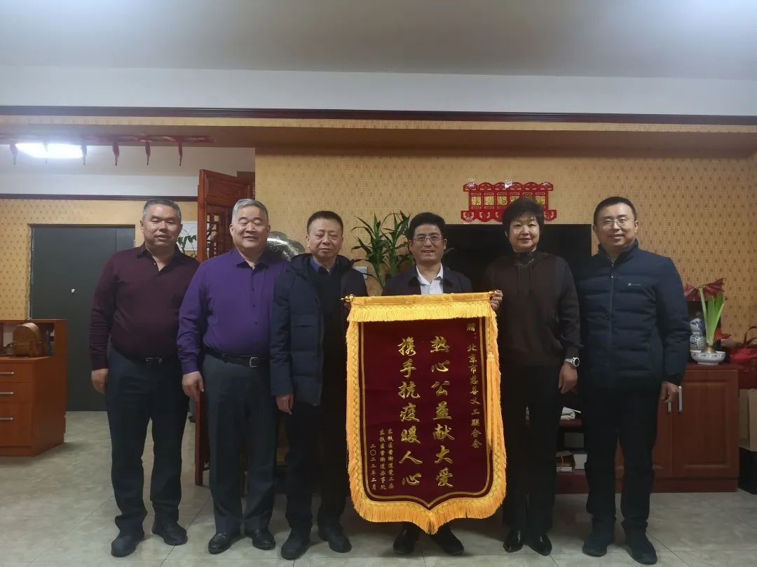 2月28日,丰台区东铁匠营街道工委书记李雪松、办事处主任孟丹,副主任常宇,为我会送来一面印有“热心公益献大爱 携手抗疫暖人心”的锦旗和“众志成城抗击疫情”的感谢信,我会常务副会长、秘书长陈志斌接待了李雪松书记一行,副会长王百玲,副会长秦道鑫,常务理事、慈义联(北京)投资顾问有限公司总经理邓连强陪同接待。