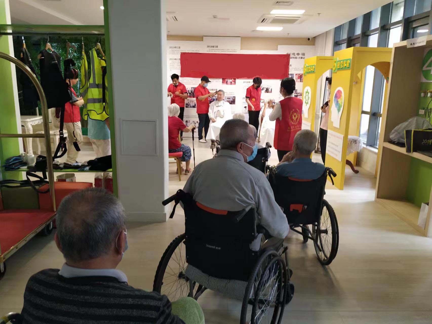 30多名慈善义工刚走进护理院,就开始为有需求的老人理发,当看到坐在轮椅上等候理发的老人们越来越多时,慈善义工们又与老人一起陪护聊天。文艺演出在“琴之声”乐队高亢洪亮的《好日子》中拉开序幕,他们统一着装,鲜艳的红马甲衬托着慈善义工们饱满的服务热情。演员们为退伍老兵演绎了《军歌联奏》、《唱支山歌给党听》等歌曲,用歌声赞美新时代的幸福生活。在场老兵还重温了红色之旅和战斗拼杀精神,讲述了一个个精彩的战役故事,两位80多岁的老人演唱了《我是一个兵》、《英雄赞歌》、《军港之夜》等歌曲。慈善义工们向老兵们致敬并向老人献花。慈善义工联合会理事安丽娟是组织此次联谊活动的牵头者之一,她带着感恩的心情走到老人们身边,为长者们献上了《愿亲人早日养好伤》等歌曲,活动后她还深入到卧床不起的长者身边去探望。