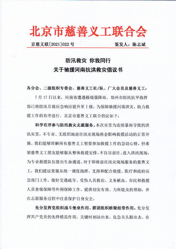 37000v威尼斯《防汛救灾·你我同行—关于驰援河南抗洪救灾倡议书》