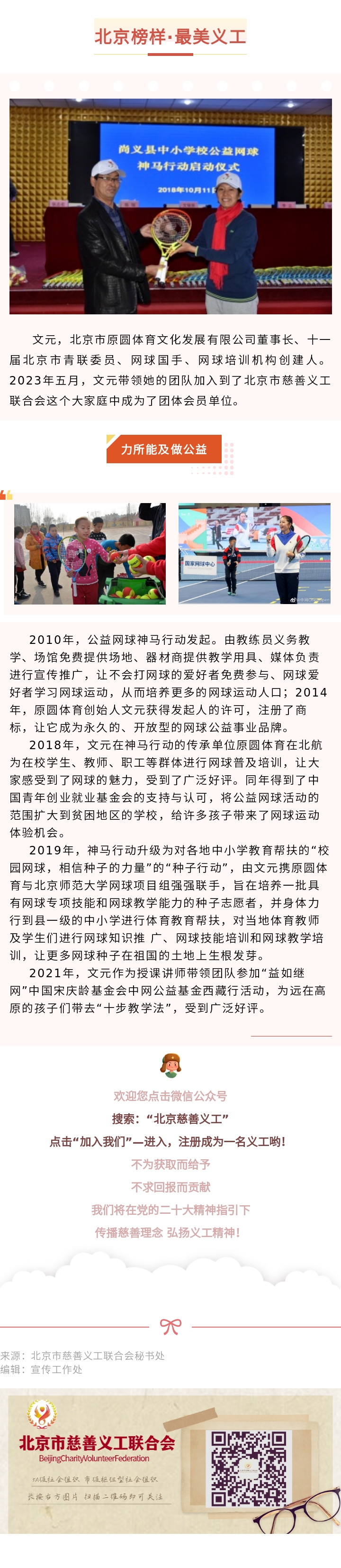 【北京榜样·最美义工】文元:推广宣传网球运动