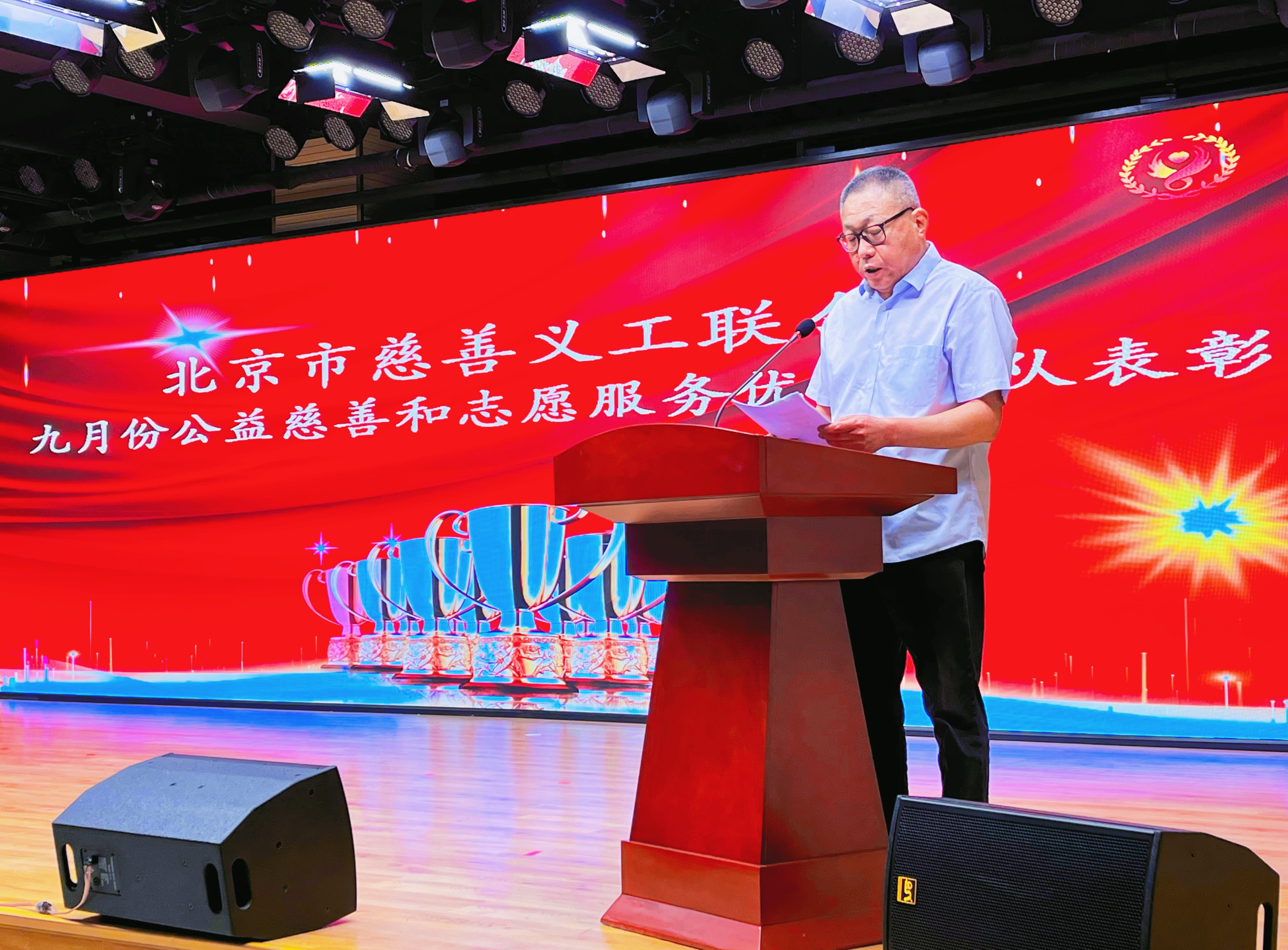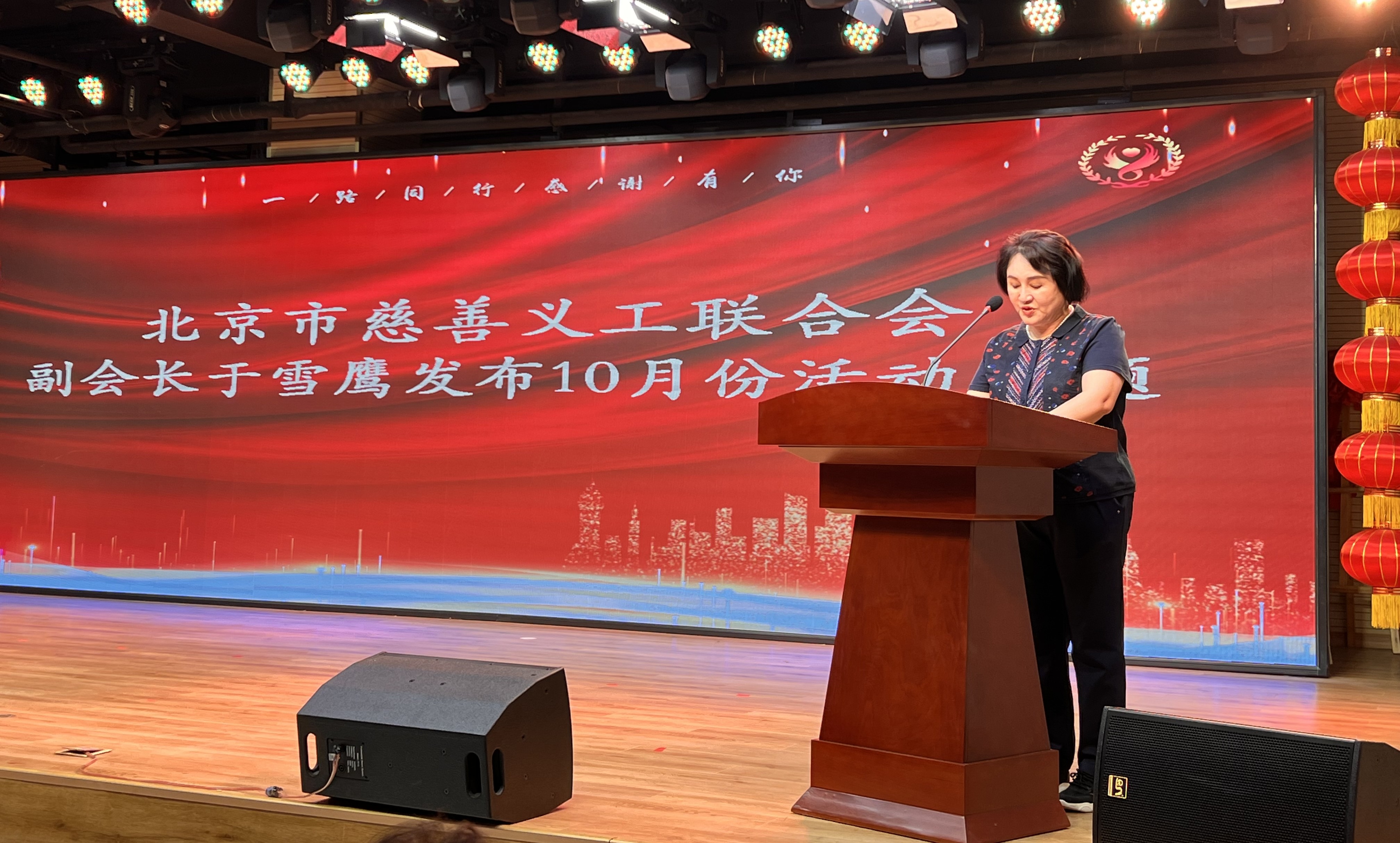 表彰决定后,联合会副会长于雪鹰向全市慈善义工发布“强国复兴有我,慈善义工同行”10月份主题活动。