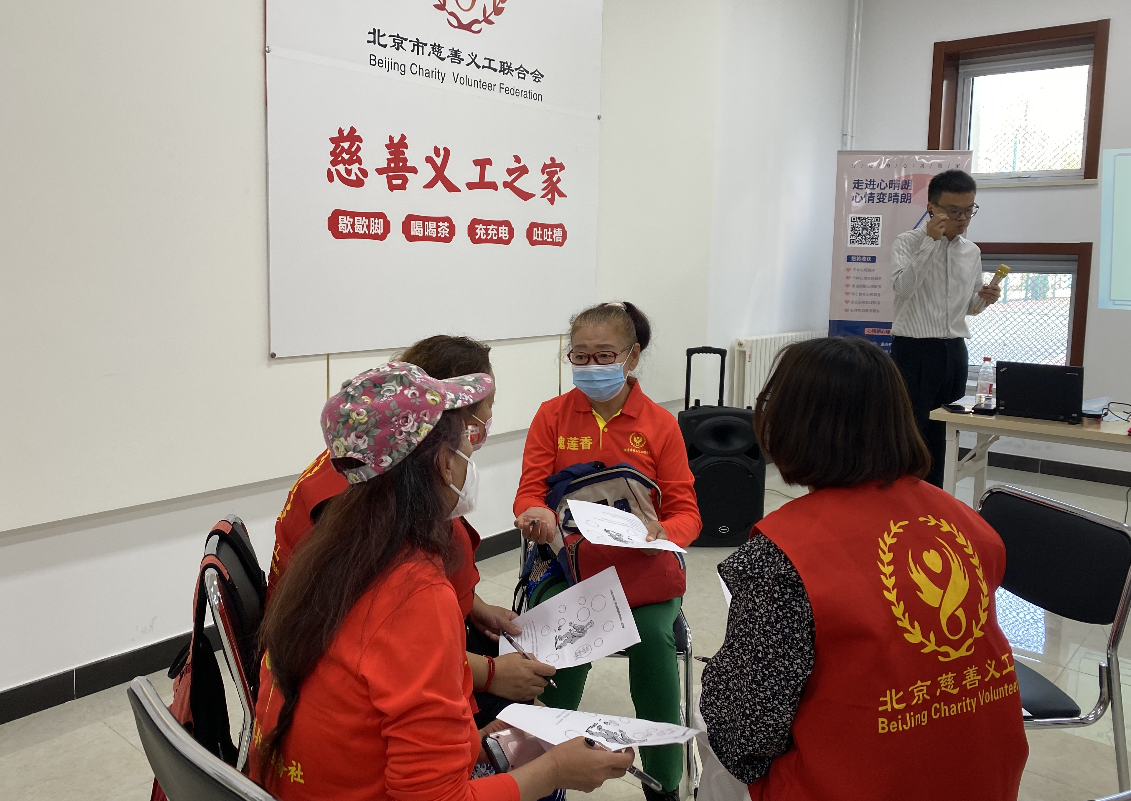 主题活动发布后,现场慈善义工走进丰台区石榴庄综合文化中心“慈善义工之家”。这是慈善义工之家自9月3日成立以来的首批“回家人”。在这里,义工们将现场感受“益智游戏”的奇妙,畅享“倾听小屋”魅力、学习“身边急救”常识、舒缓心理压力,传唱红色经典抚慰心灵传递能量。