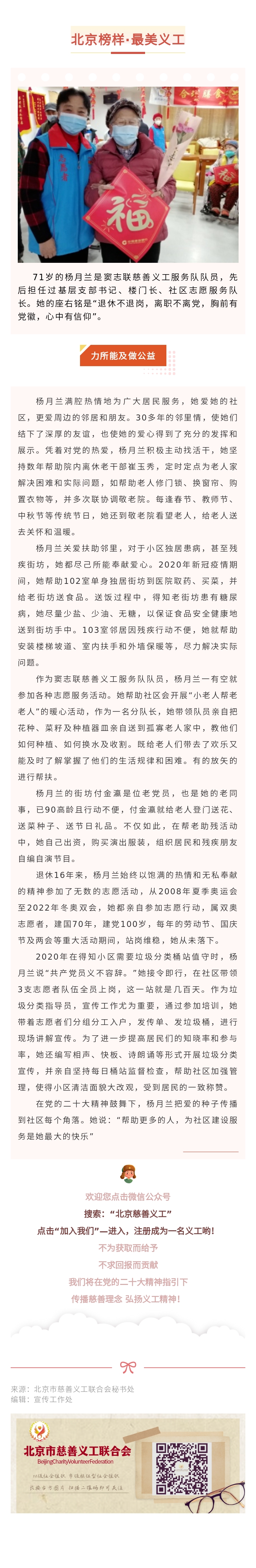 【北京榜样·最美义工】窦志联慈善义工服务队队员:杨月兰