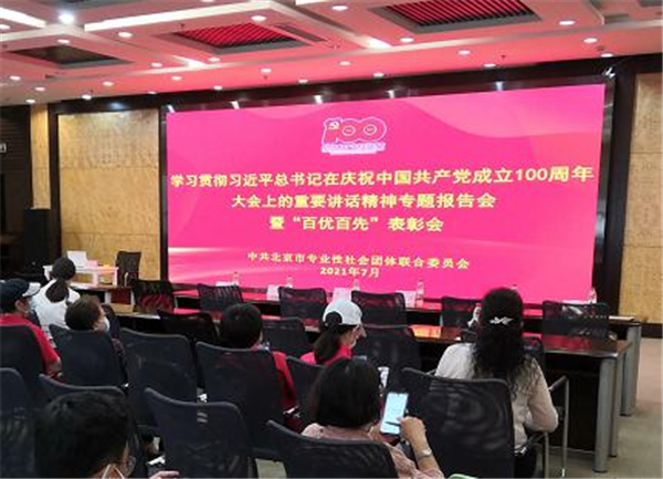 7月30日,中共北京市专业性社会团体联合委员会在慈铭大厦会议室隆重集会,庆祝我们党的百年华诞,学习贯彻习近平总书记在庆祝中国共产党成立100周年大会上的重要讲话精神,表彰在“百优百先”活动中评选出的优秀共产党员、优秀党务工作者、先进党组织和支持党建工作先进单位。37000v威尼斯党支部荣获先进基层党组织、党支部书记任冰荣获优秀党务工作者称号。