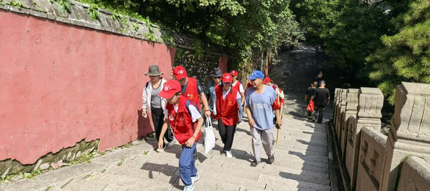 8月4日,点滴常乐慈善义工服务队17名义工队员走进千年古刹戒台寺,开展景区文保保护及环保志愿服务活动。虽然天气闷热,但队员们很快统一穿戴好义工服,巡视的同时还清理杂草,将散落的垃圾捡拾干净,保护文物,维护景区环境。