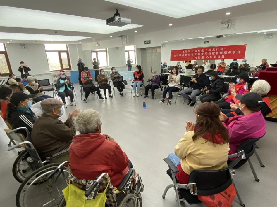 活动分两项开展。第一项是主持人通过不同的音乐节奏,带动老年人手脚并用动起来,不仅放松身心,增加老年人的归属感和自信心,还能促进老年人之间的交流互动。第二项是手指按摩,这种方式拉近了老年人之间的距离,增加了情感交流,也能有效改善疲劳,促进身体血液循环。