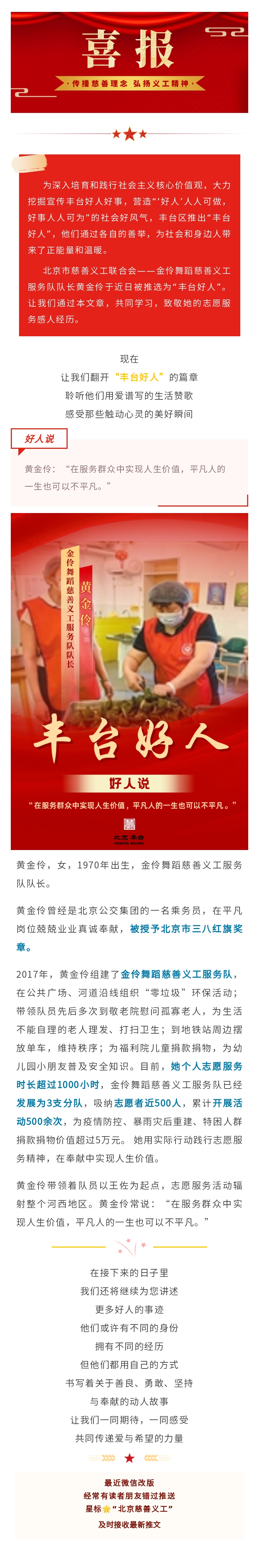 【喜报】丰台好人—黄金伶:超1000小时的公益路