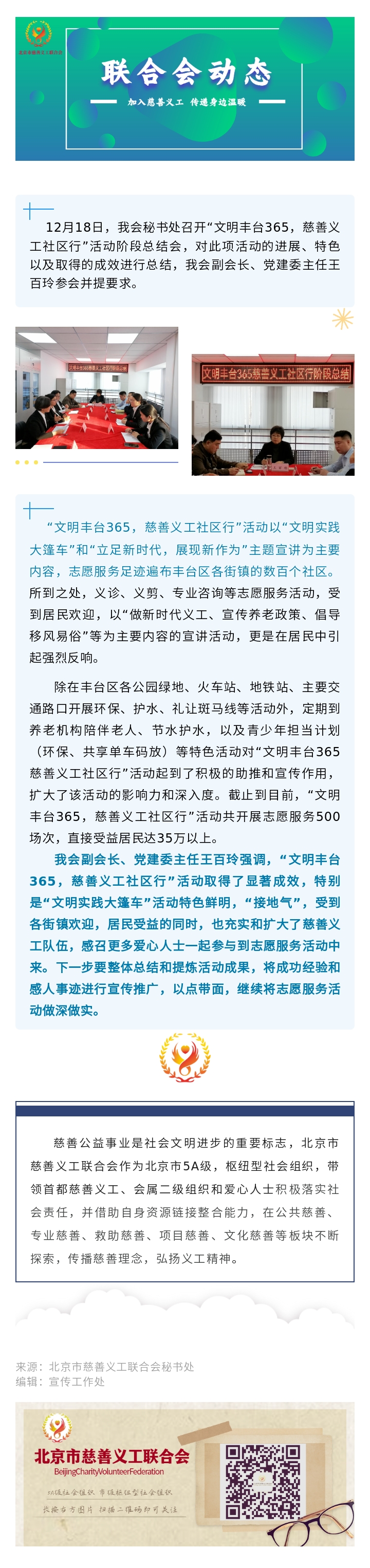 会务动态|我会秘书处召开“文明丰台365慈善义工社区行”阶段总结会