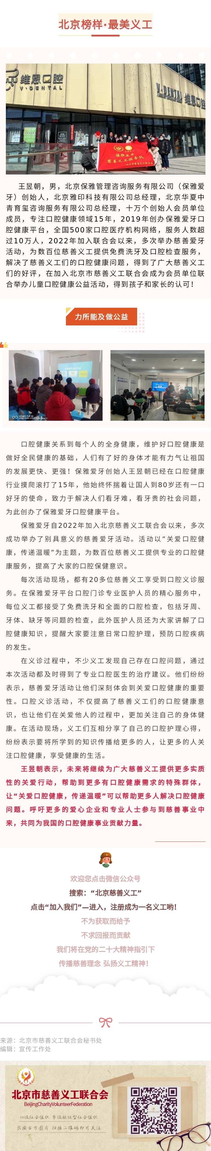 【北京榜样·最美义工】北京保雅管理咨询服务有限公司:王昱朝