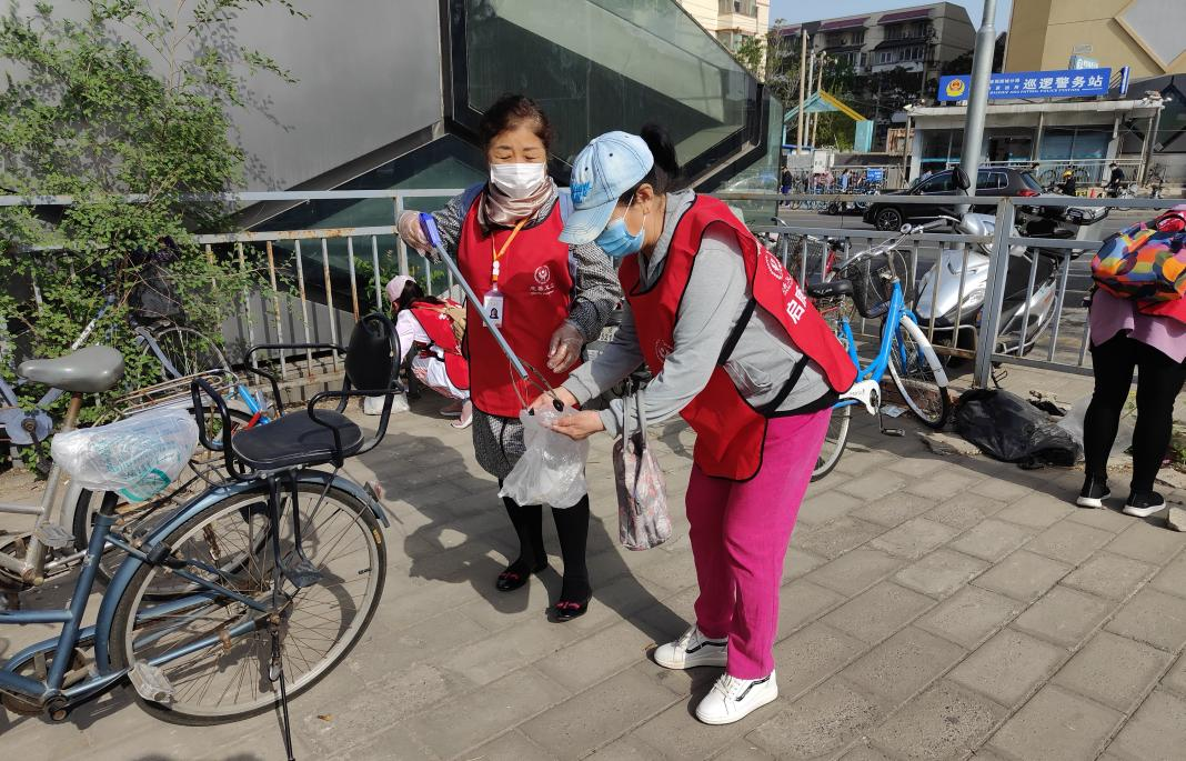 在爱国卫生运动周末卫生大扫除活动中,梁士俊负责在陶然亭地铁口清扫自行车棚内的环境卫生,并将自行车码放整齐。她还在莲花池公园、万寿公园、陶然亭公园等场所协助公园保洁人员捡拾公园内的垃圾,随时提示大家文明游园,同时也不忘督促游客做好疫情期间的个人防护。